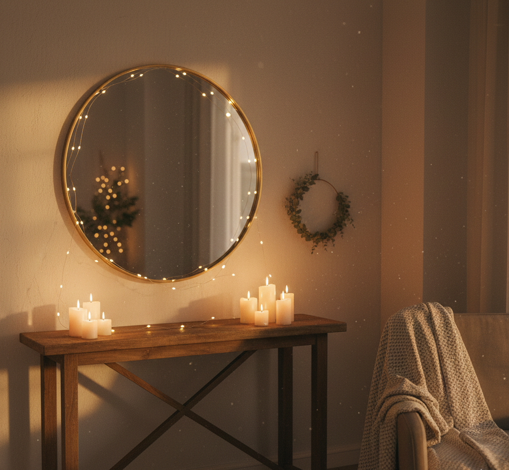 Usa iluminación cálida y natural: velas, guirnaldas sutiles, lámparas tenues.